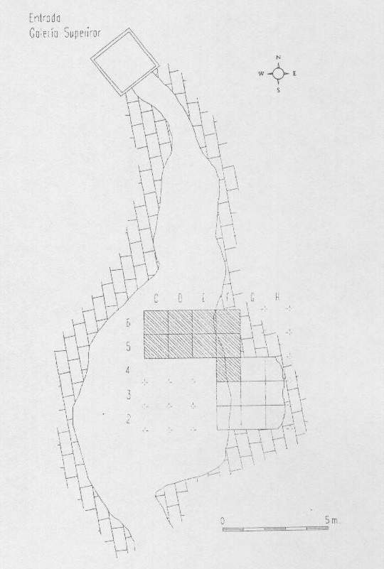 Planta de la denominada Sala A con las superficie afectada por los trabajos de excavación desarrollados entre 1991 y1995